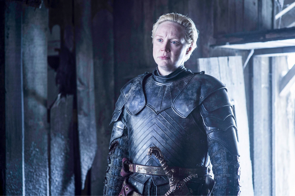 Brienne of Tarth (Gwendoline Christie), aka Captain Phasma without her helmet. Was last seen killing sort of slaying Stannis. Or so we assume.