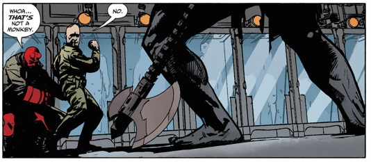 Hellboy embarks on his first mission with the B.P.R.D. Team and wouldn’t you know it, there are demon monkeys, drunken priests and someone out to get the Big Red One.