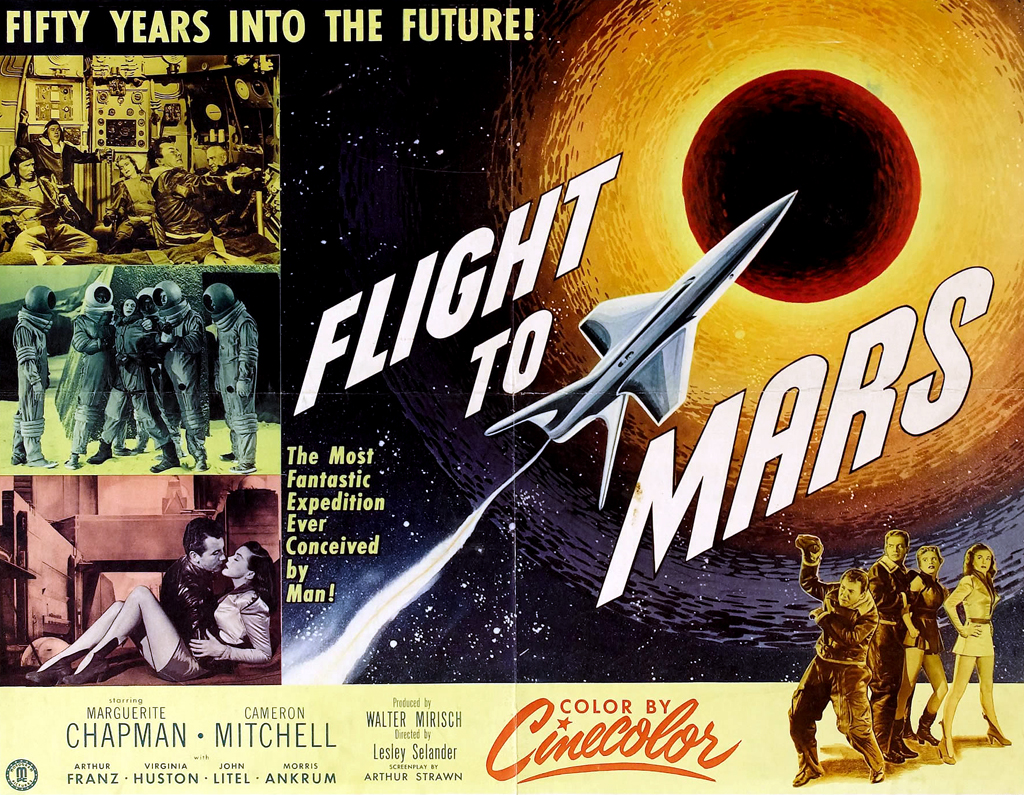 But enough of these alien invasions and good will missions, for there were a pair of films released in 1951 wherein we Earthlings head to space. The first one is Flight to Mars, which is basically just a b-movie retelling of 1950’s equally b-movie Rocketship X-M.