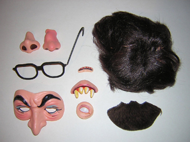 In your Hugo box you received the Hugo figure (in England he had plastic arms, not so for us American kids who had stuffed cotton ones) and an array of plastic face parts, fake hair bits and a tube of adhesive to stick things on temporarily until your next Hugo assignment arose.