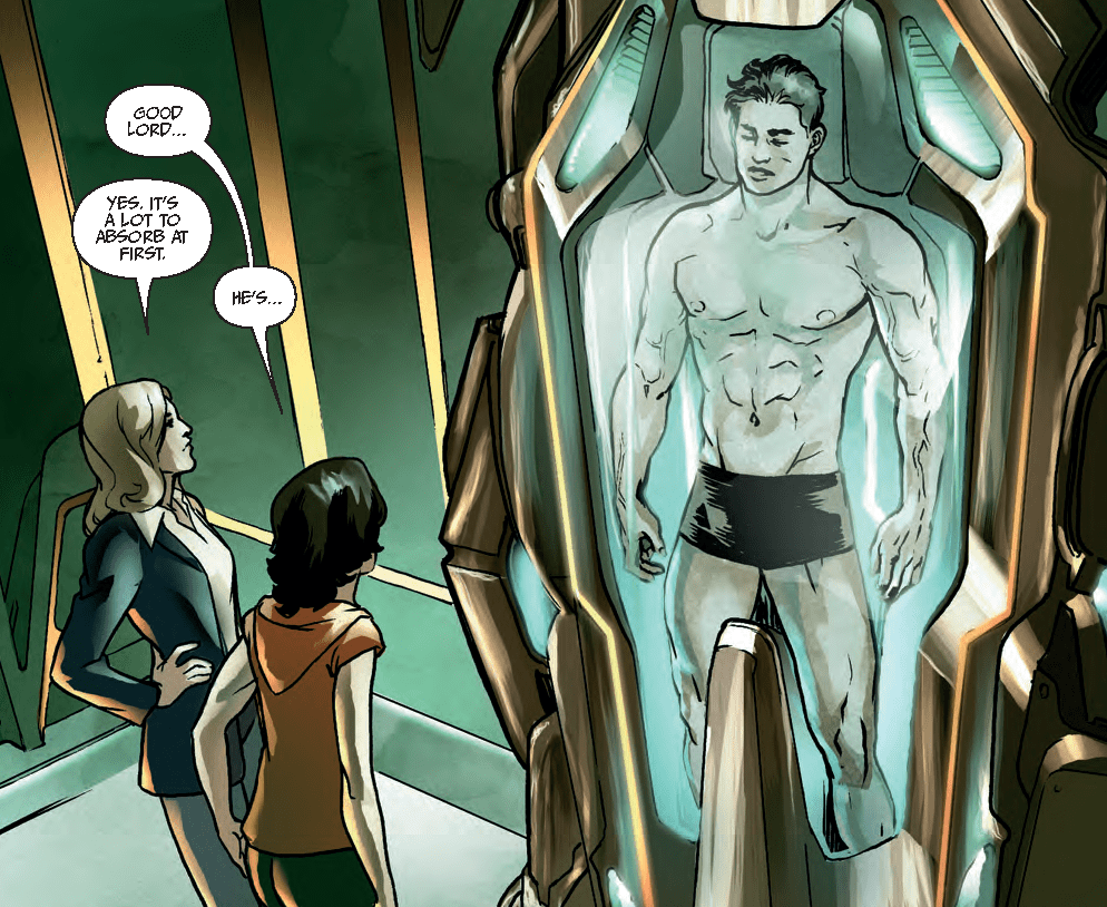 He has heightened senses, strength and bravery as his strong suits but his social development makes adjusting to real human interaction a challenge. According to preview material, he has the body of a god, with the social mind of a child.