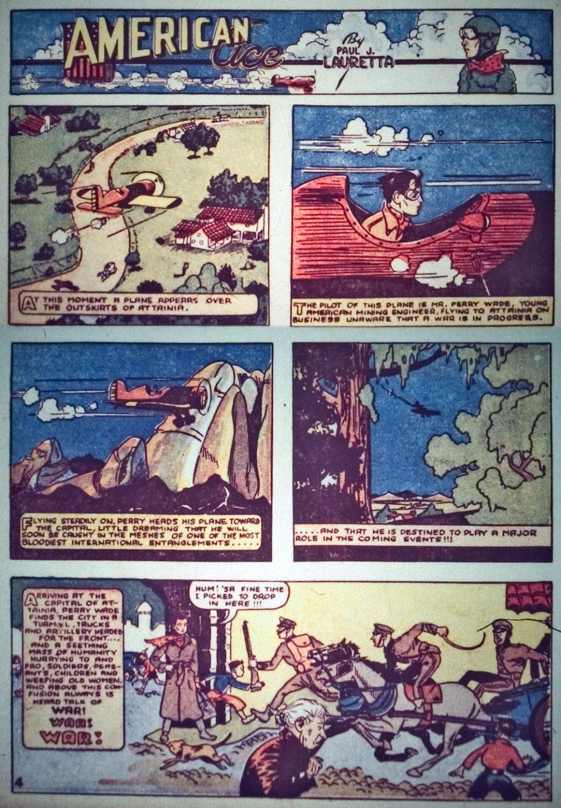 Poor American Ace. He gets two stories in Marvel Mystery Comics, in this issue and the next, and then he’s canceled. The artist, Paul J Louretta took the character over to Centaur Comics where, with a quick name change, Perry Wade becomes Lieutenant Lank, and he gets two more adventures.