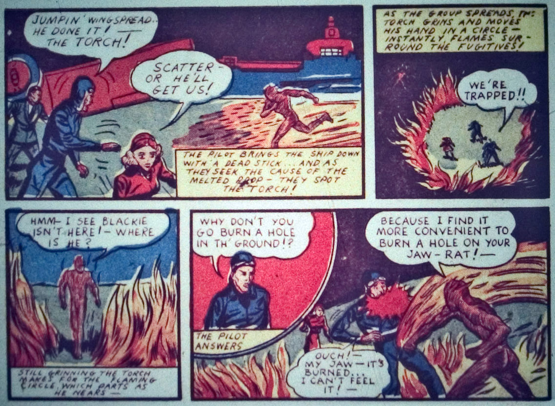 The American Ace story doesn’t go very far, appearing only in this and one other story, but I suspect it is because the story is politically complex and filled with pre-war angst. I will get back to American Ace in a more complete way in an appendix to issue three of Marvel Mystery Comics #3, coming down the road some time.