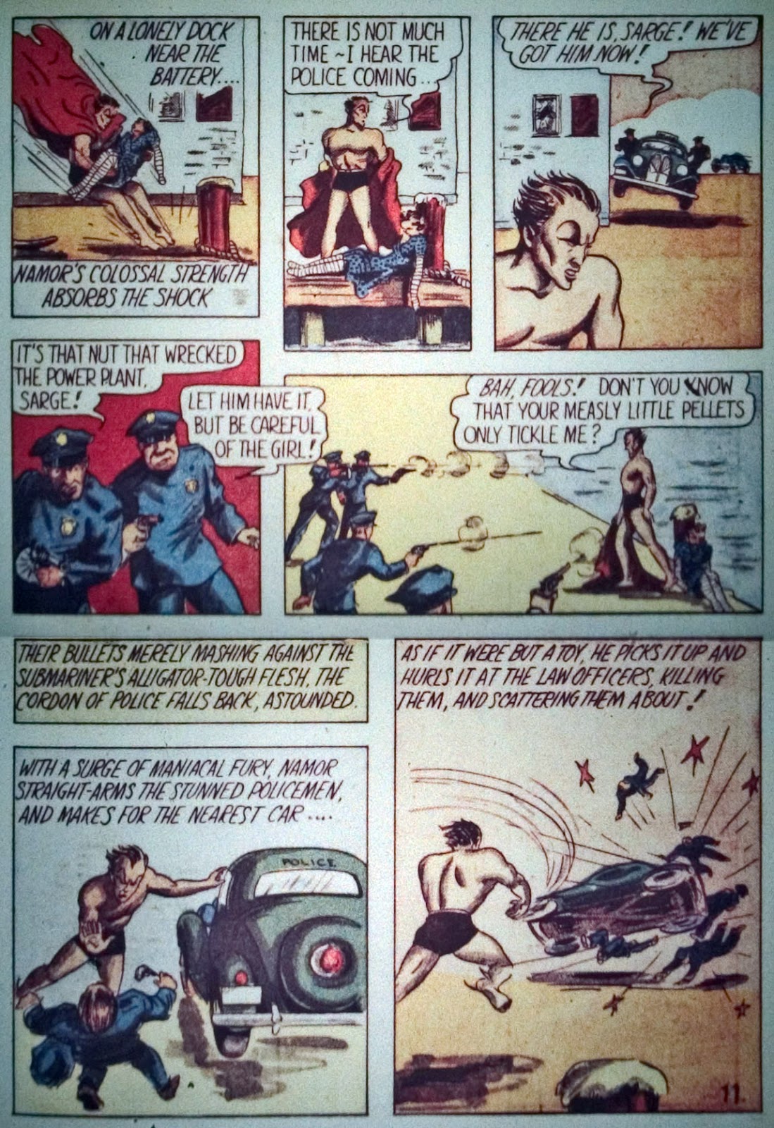 The story ends with the police rescuing the girl from drowning, but a police officer named Foley dies while fighting Namor.