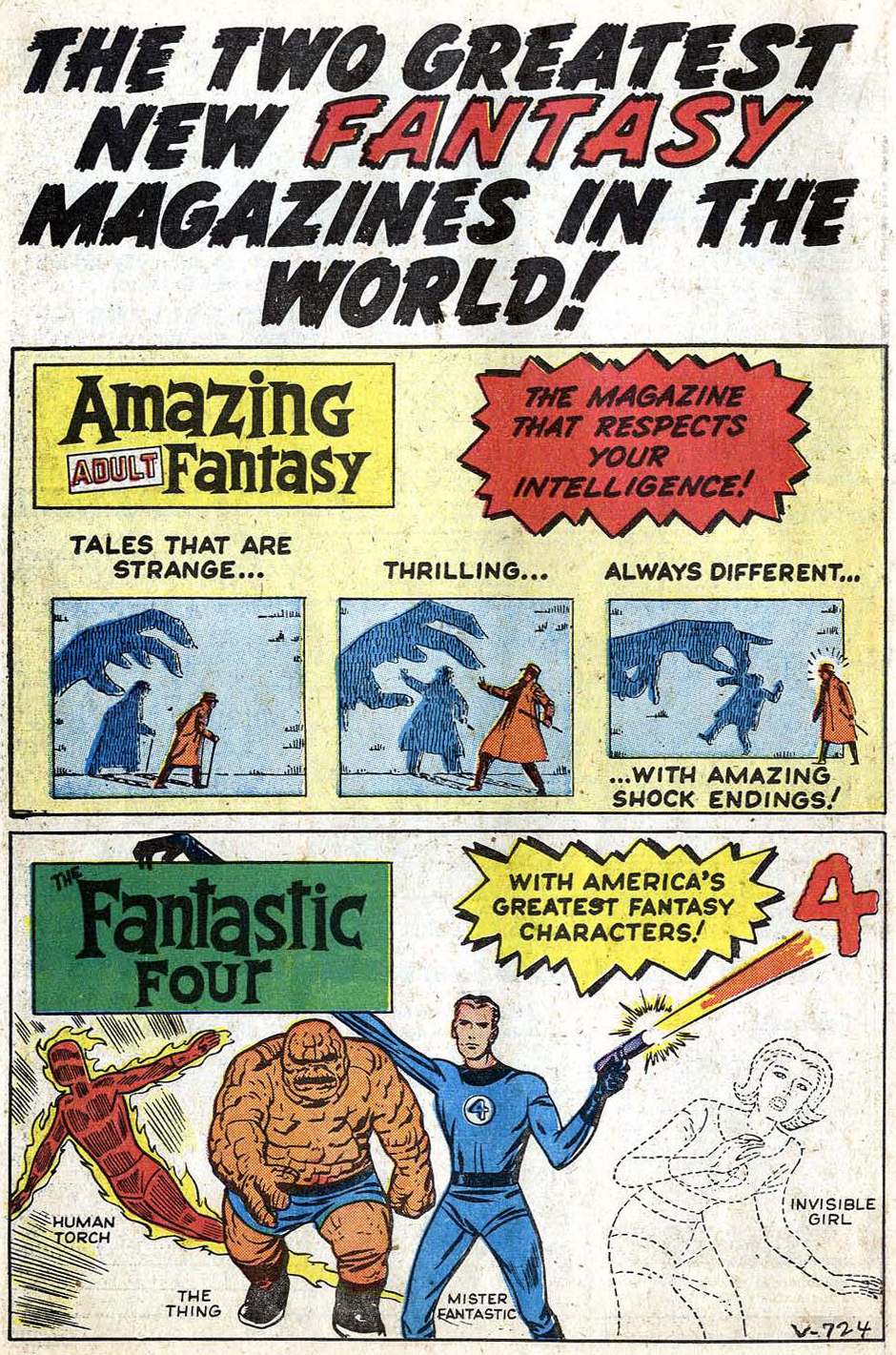 There is an advertisement for two other Marvel Comics in this issue. Amazing Fantasy will soon introduce Marvel’s most popular character, the amazing Spider-Man.