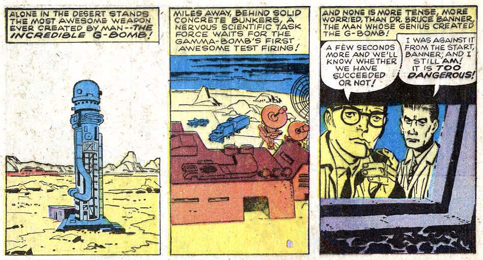 When the Hulk is first introduced, we learn that Banner becomes the Hulk with the setting sun, and becomes Banner again during the day. In this issue the sun sets as Banner is taken to the other side of the world, to the Soviet Union, where the sun should be rising. It is not night everywhere on Earth all the time. This makes the story hard to timeline properly.