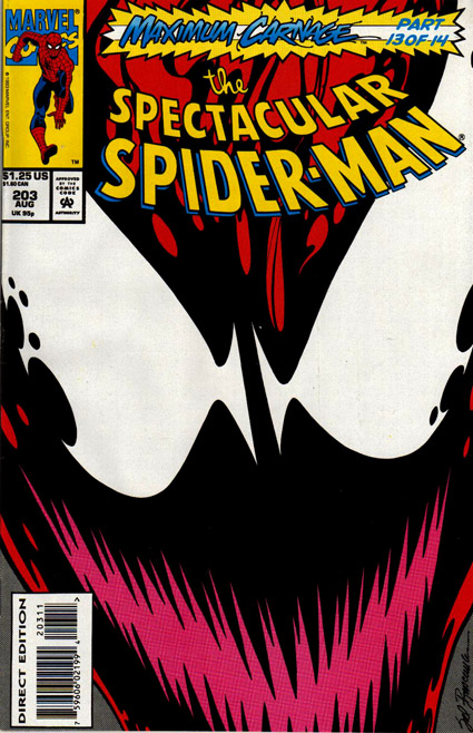 Here’s the thing: I never read Maximum Carnage in its entirety. I remember the first part very well, because I owned it. It was the lead story in the first issue of Spider-Man Unlimited, a quarterly Spider-Man anthology that represented the hero’s own plummet into over-exposure (one that continues to this day). Because it was a first issue, it represented that all-important quality the Big Three (and yes, Image roared out of the gate to become one of the big ones) cherished: collectibility.