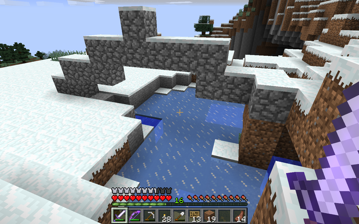 There was the agony I felt after I fell into lava when I was deep underground, because I thought I was safe inside this giant cave, and I was building a bridge across some lava, and then an undead skeleton appeared on the other side, and he shot me with an arrow and knocked me from my unfinished bridge, and I fell into the lava, and I couldn’t escape, and I died, and when I returned after respawning to see if my items were somehow still there… I found that only a few of my tools – and none of my enchanted weapons or armor – had survived.