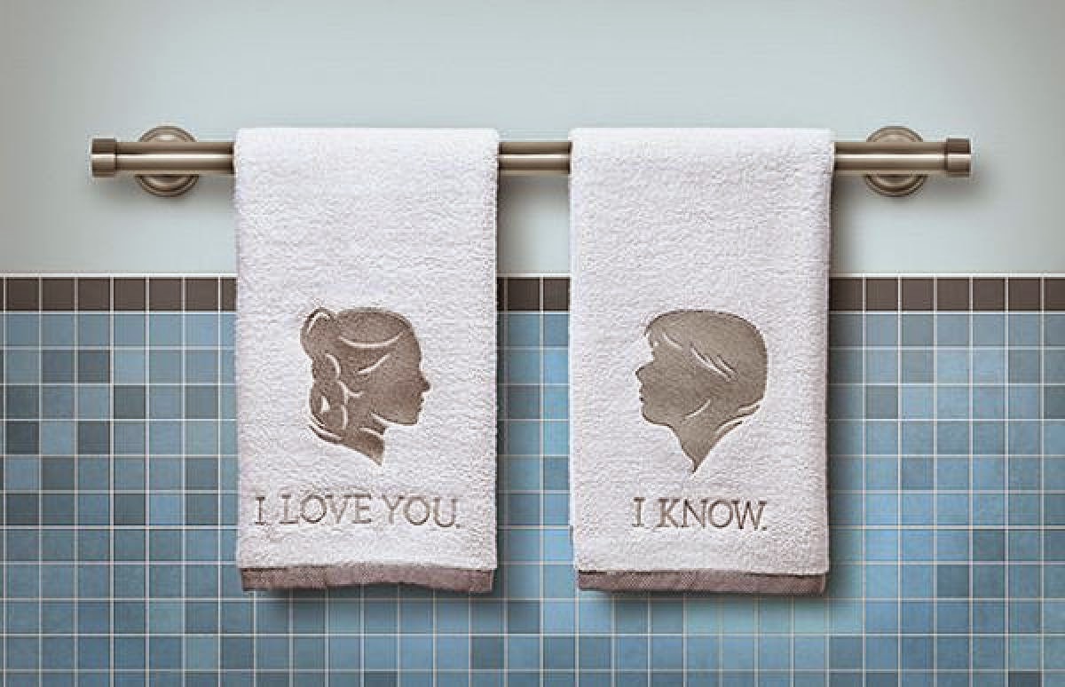 Dads married to geeky Moms know the importance of giving the perfect gift. And really, is there any better way of showing her that you are eternally thankful that she ruined her vagina baring you offspring than by harnessing the power of Han and Leia in hand towel form?