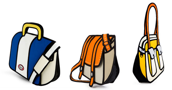 Jump From Paper bags were invented by two women in Taiwan who thought it would be awesome to bring 2D illustrated bags to life. These three bags feature bold outlines, bright and vibrant colors, and will definitely turn heads. In a way, they remind us of those movies when 2D animation was mixed in with live actors… like you hopped into Toontown from Who Framed Roger Rabbit, bought yourself a nice bag, and brought it back to the real world.