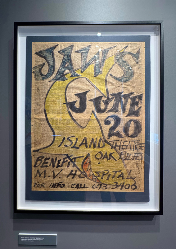 Hit the ground running. The “JAWS at 50: A Deeper Dive” Exhibition at Martha’s Vineyard Museum was fun, informative and beautifully presented. “Deputy Hendricks” actor Jeffrey Kramer and JAWS production designer Joe Alves were there to speak on a panel…as was Mr. Hooper himself, Richard Dreyfuss. Another “star” from the film had to wait outside though: “Marty,” a lovingly accurate recreation of Brody’s 1975 Amity Police Chevy Blazer brought to life by Gabe DiSaverio of The Spicy Shark.
