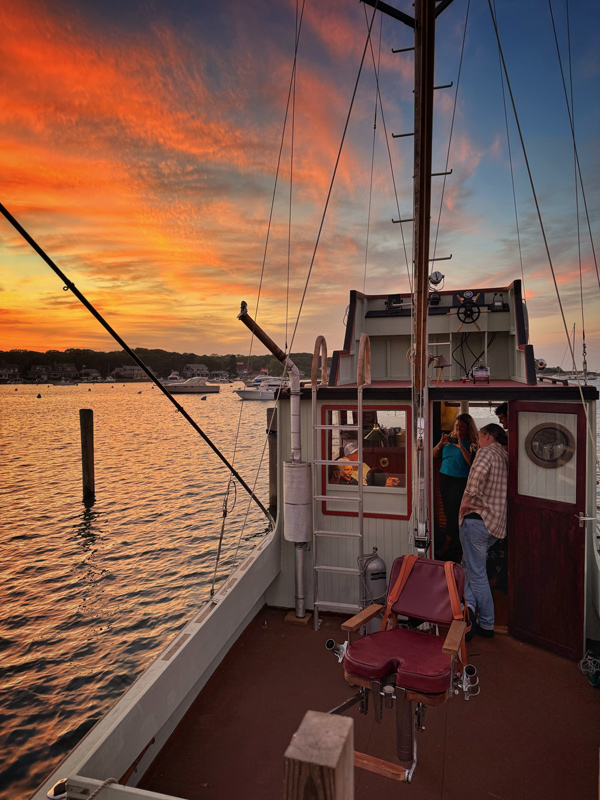 Later, after a much-needed lobster roll dinner at Lookout Tavern, the housemates and I wandered back to the Orca at magic hour for one final visit. But the real magic was in discovering Dreyfuss was there too, onboard the ship, and singing “Show Me the Way to Go Home.” Witnessing that moment in person alone made this whole trip worth it.