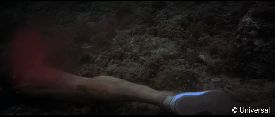 A man’s bitten off leg drift downward into frame, and bounce onto the ocean floor.