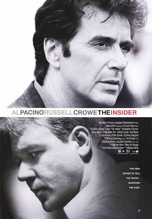 Again, a little over 20 years later, Michael Mann brought us the story of a whistleblower from Big Tobacco (Russell Crowe) who wanted to tell the world about all of the awful things that these companies were doing to their customers.