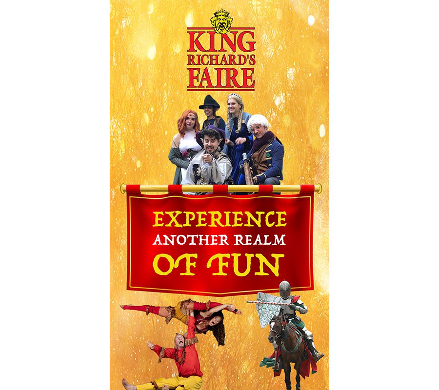 For the 41st season, King Richard’s Faire offers the region’s best live entertainment, including eight stages featuring hundreds of local and national performers along with exciting rides and games for a full day of “escaping YOUR reality”. Guests will be dazzled by acrobats, aerialists, jugglers, fire-eaters, minstrels, dancers and puppeteers, as well as brave knights battling three times daily on the joust field, and bawdy beggars competing in mud. Frolicking faeries can be seen dancing through the forest, where wee ones can ride a pony or unicorn and watch royal dogs perform tricks. Throughout King Richard’s Faire, happy villagers help attendees escape into a fantastical, whimsical world of interactive theater unlike any other theatrical attraction.