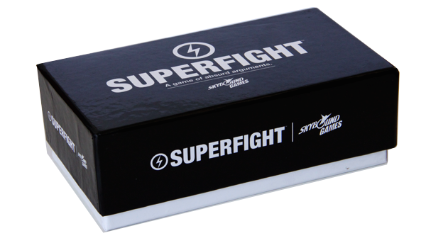 Superfight is a set of cards with which you can play any number of games (the rules come with three or four games). There are two categories of cards: the fighter cards, which usually name someone who could get into a fight with someone (like the Hulk, a child beauty pageant queen, or a carnie), and descriptor cards, which add some detail to the fighter (like “armed with grenades,” “throws cats,” or “is made of guacamole”).