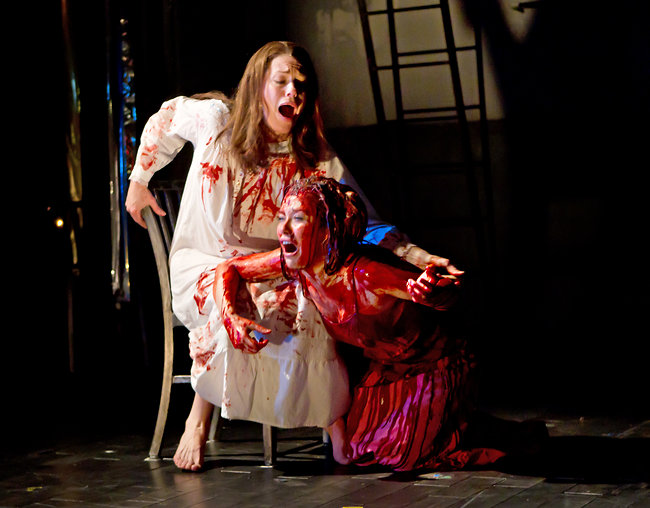 And as for the money-shot bucket of blood crescendo of the tragedy, this new production does more with its smaller budget than what could be done in 1988 on stage. Using a combination of colored filters on lights, video projections, minimalist set props and expertly placed sound design, the hell-prom is fully realized in bloody glory.