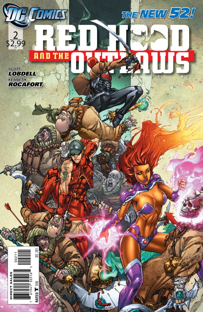 Just two issues in, Lobdell is establishing the Red Hood’s character arc. He’s the anti-hero who pulls no punches in every aspect of his work. Roy (Arsenal) is the complete opposite and a loud mouth to boot. Starfire has served no real purpose as of yet except for being eye candy with a more sexualized look. Lobdell’s writing leaves a few questions to ponder over but they are good questions like are they really going to be a “team” or, are they just together for another reason yet to be determined?