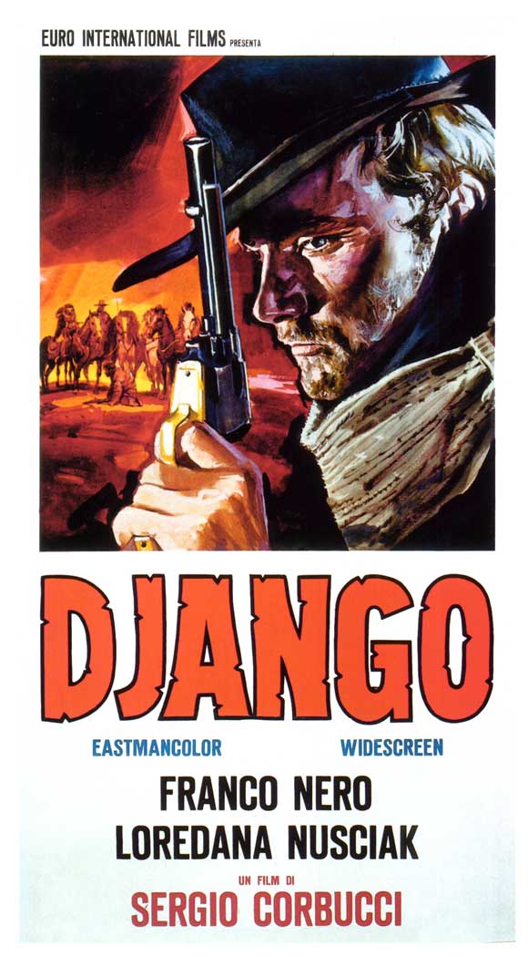 Though his hero will be a freed slave and the plot will involve a German bounty hunter and a slaver-owner who uses slaves for death matches and prostitution, Tarantino is also borrowing—apparently—from an old Spaghetti Western tradition of just using the name Django in the title. Wikipedia tells me that there are loads of “sequels” to Django that aren’t actually sequels at all. Basically filmmakers used the name to cash in on the success of the original, just like in New York there are, like, a million Ray’s Pizza’s, all with slightly different names.