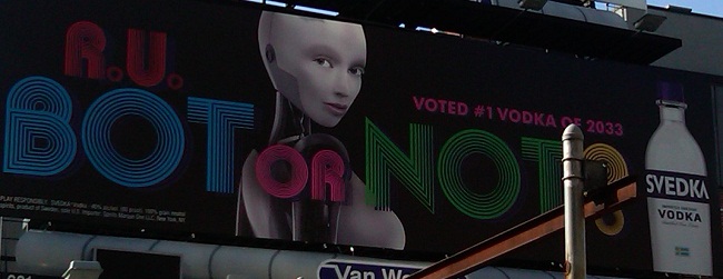 Here’s a billboard. The tag line for the campaign is, “RU BOT OR NOT?What in the hell is that supposed to mean?