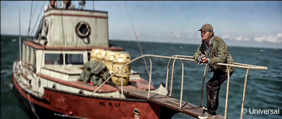 Hooper brings scientific, dispassionate, rational knowledge of the shark as a natural phenomenon. He has no particular feeling of malice towards the creature– in fact he describes himself as a “shark addict.” When he first arrives on the island he’s given his own insight into Brody’s world of fear when he examines the remains of the first victim and visibly gags– finally being brought face to face with the reality of what he’s studied. Hooper processes his dread as anger: first at Brody and the coroner and then at Vaughn and the whole community for their willful ignorance of what they’re dealing with.