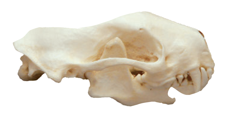 In most mammals, the upper teeth are attached to the skull. The bottom teeth are attached to the lower jaw. The lower jaw is not part of the skull. When the animal is alive, the lower jaw is attached to the skull by soft tissues. After an animal dies, those soft tissues decay. So if you find a skull in the wild, you may not find the lower jaw with it. Both pieces—the lower jaw and the skull—are fun to collect. Often, the teeth will remain planted in the skull or lower jaw, which can help you figure out what kind of a skull you have. Each mammal has a certain number of each kind of tooth. Scientists call this information a “dental formula.” It is the first thing they look at when they want to identify a skull.
