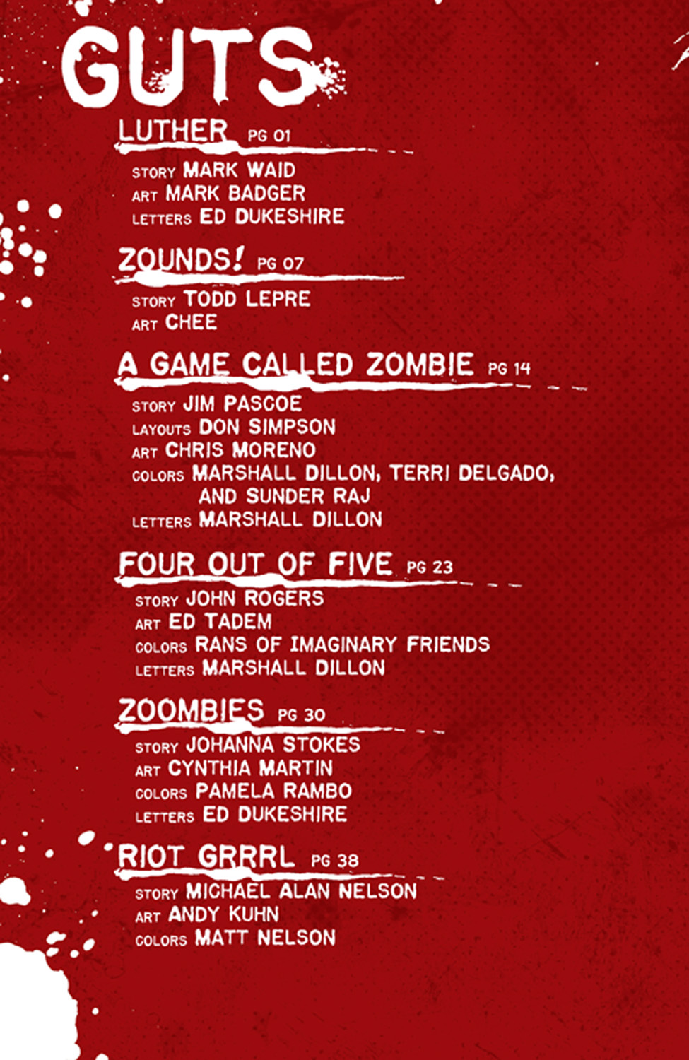 We’ve got plenty more mad creations spilling out of our zombie kitchen! Delivering smart, accessible, high-quality zombie short stories, this anthology has met with great acclaim amongst both comic and zombie fans, featuring more great zombie stories from more great writers and artists that you know and love. Don’t worry about leaving room for dessert — you’re it! Featuring work from writers Mark Waid (IRREDEEMABLE, KINGDOM COME), John Rogers (Leverage, Transformers), William Messner-Loebs (THE FLASH, THE MAXX), Brian Augustyn (JLA: YEAR ONE, B.P.R.D.), role-playing game master Monte Cook, Karl Kesel (FANTASTIC FOUR, SUPERMAN), Michael Alan Nelson (28 DAYS LATER), Ian Brill (DARKWING DUCK), Tom Peyer (THE FLASH), Pierluigi Cothran (HEROES webcomic), Bryce Carlson (WALL•E), plus art from the likes of Andy Kuhn (FIREBREATHER), Keith Giffen (52, LEGION OF SUPER-HEROES), Jon Schnepp (Venture Brothers, Metalocalypse), Toby Cypress (KILLING GIRL), and more. With talent like this, neither the dead nor the living stand a chance!