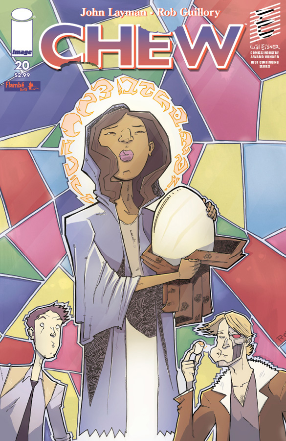 Mike Applebee has been itching to get Tony Chu booted from the FDA, and today might be his lucky day. Tony and Colby infiltrate The Church of the Immaculate Ova, a cult of egg worshippers, and things, of course, go terribly wrong. The climax of ‘FLAMBE,’ CHEW’s fourth story arc, and the end of an era for Tony Chu!