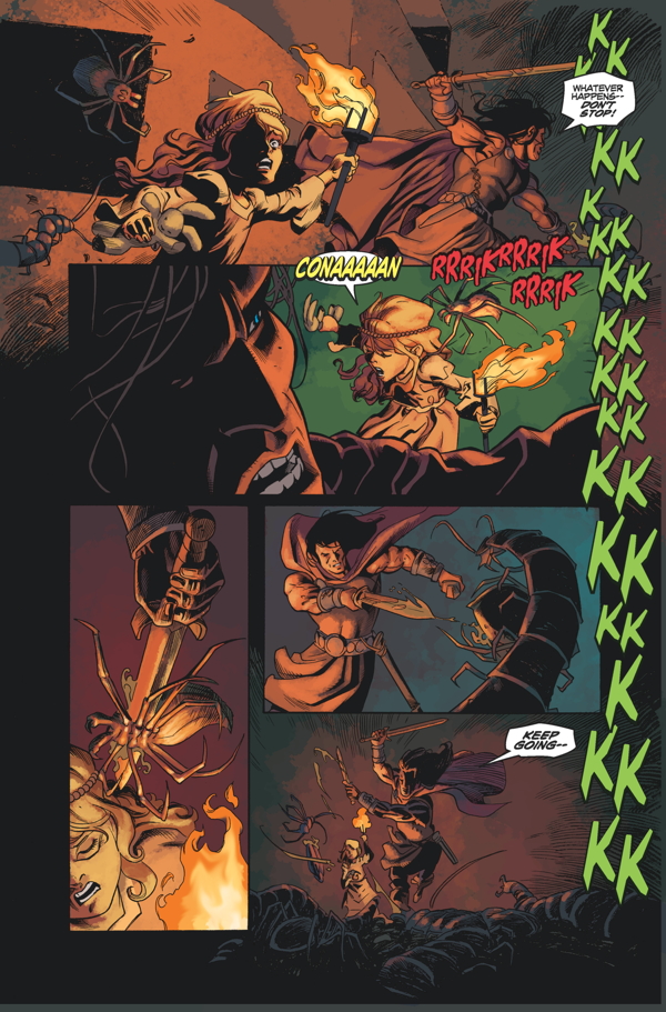 In underground catacombs beneath Aquilonia’s capital, a desperate Conan fights to protect himself–and a young child–from creatures more hideous and deadly than anything he’s ever encountered on the surface.The Road of Kings is no place for weaklings!