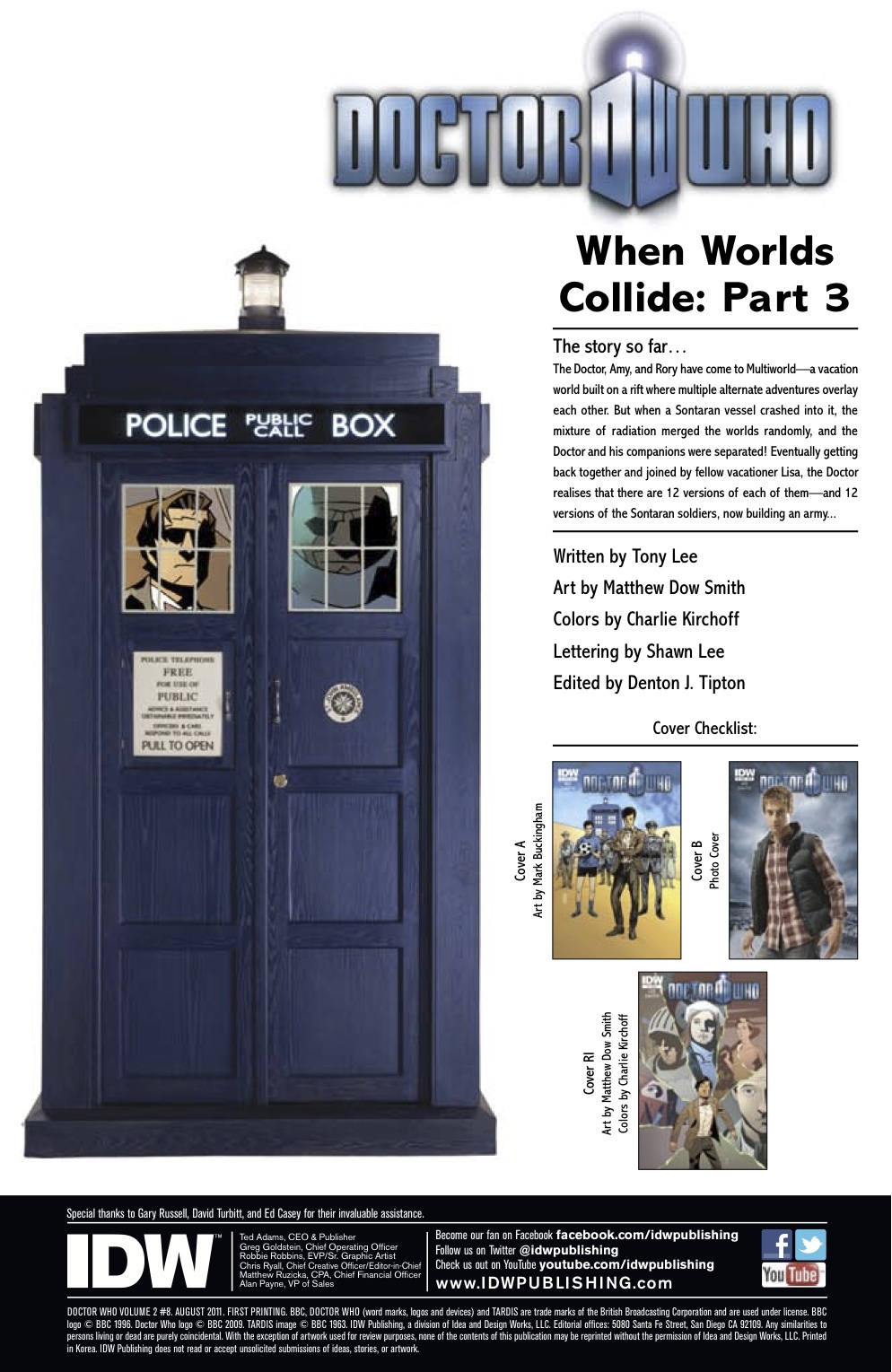 In stores this Wednesday from IDW Publishing and Tony Lee (w) • Matthew Dow Smith (a) • Mark Buckingham, photo (c)