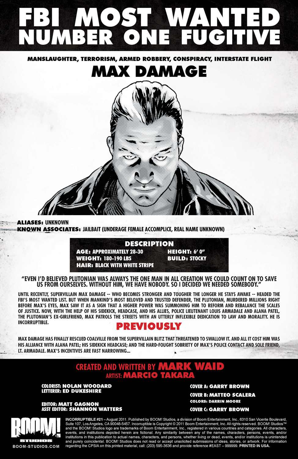 In stores Wednesday from BOOM! Studios, writer Mark Waid and Marcio Takara with alternate covers by Garry Brown and Matteo Scalera.