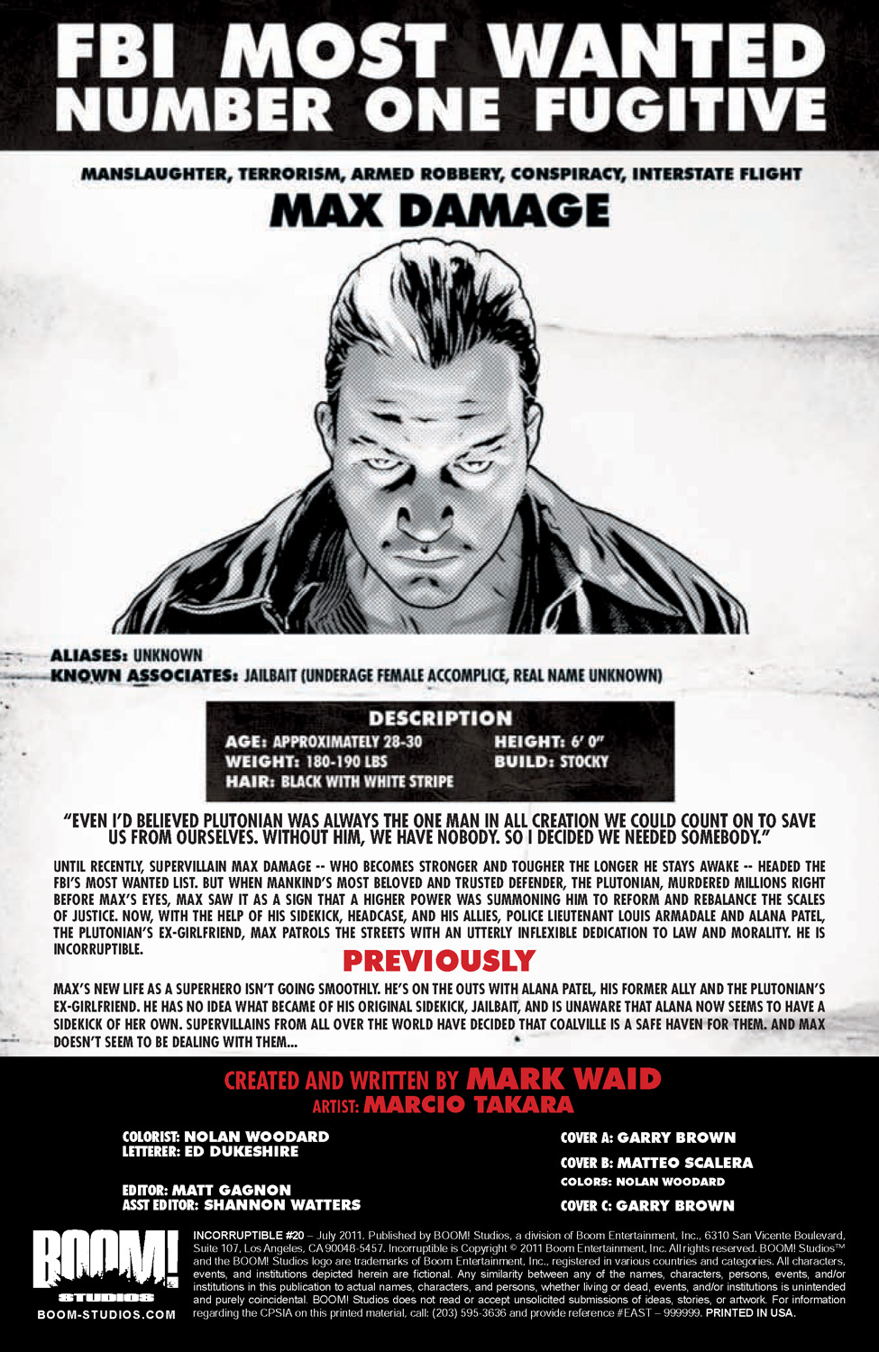 It’s reckoning time! As the sinister plans of ruthless Hayes Bellamy are put into motion, the fate of Coalville rests in Max Damage’s overburdened hands. With Bellemy holding the secret to Max’s weakness, and with annihilation of the city imminent, can Max finally prove himself to a world that still sees Enemy No. 1? Especially while trying to protect those he cares about most, and…a new sidekick? It’s the arc-ending issue that’ll change the INCORRUPTIBLE landscape forever! Miss this and miss out!