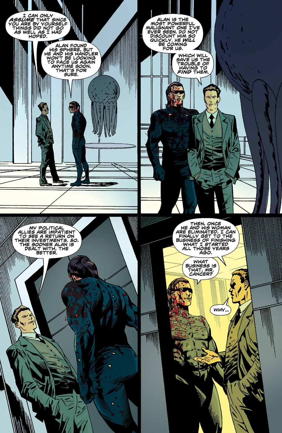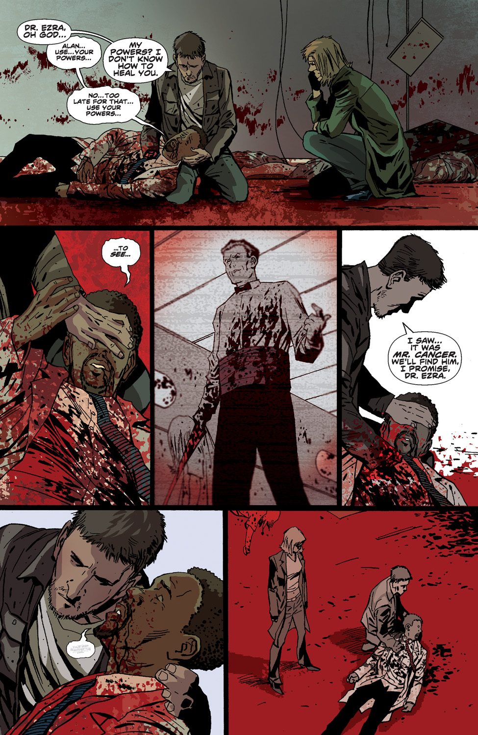 The stunning conclusion to the dark and twisted sci-fi thriller that’s unlike anything on the stands! When memories of Alan’s horrible past come flooding back and his allies lie slaughtered at the hands of Mr. Cancer, there is only one thing on his mind…revenge. Find out how it all ends in this jaw-dropping finale to the most deranged and exciting mini-series of the year!