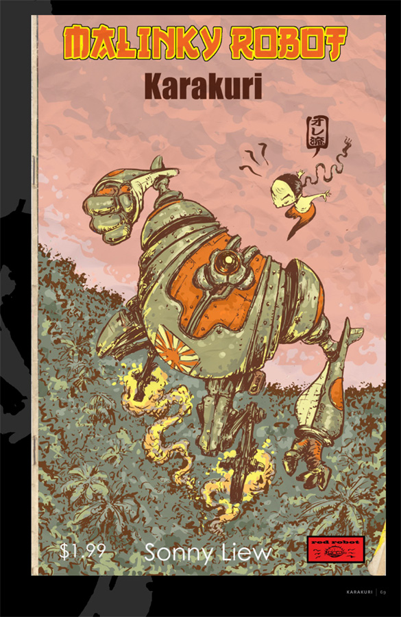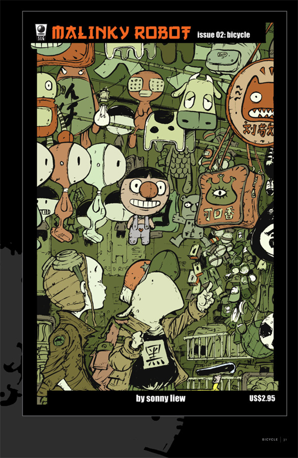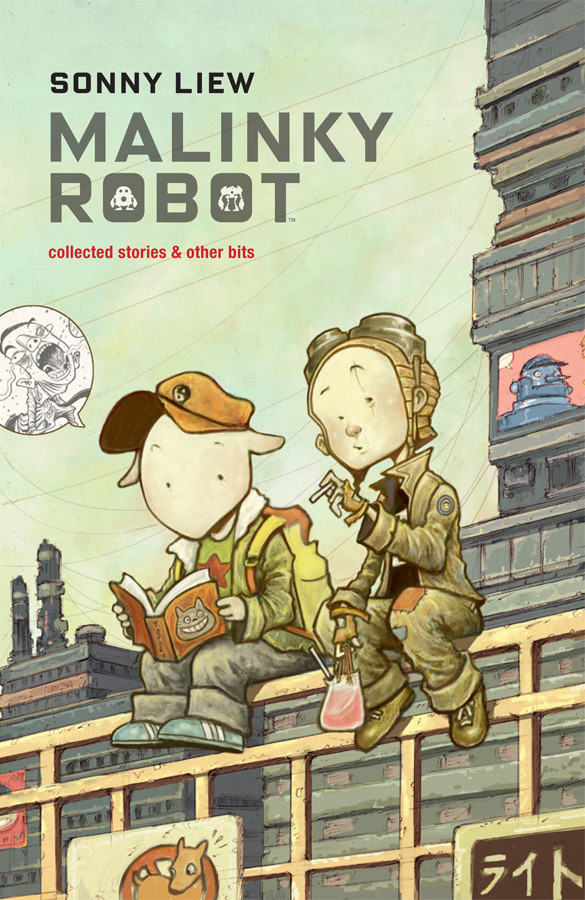 Street urchins Atari and Oliver are out to steal bicycles, watch Giant Robot movies and spend some Large Denominational Bills! MALINKY ROBOT collects five tales by Eisner-nominated artist SONNY LIEW (MY FAITH IN FRANKIE, WONDERLAND, SENSE & SENSIBILITY) featuring stinky fish, philosopher-labourers and summer rain. A recipient of the Xeric Award, the Utopiales SF Festival’s Best SF Album award and featured in the acclaimed FLIGHT anthologies, MALINKY ROBOT blends dystopian sci-fi and indie sensibilities into a uniquely charming, off-kilter world. Plus pinups by MIKE ALLRED, ROGER LANDGRIDGE, SKOTTIE YOUNG and more!
