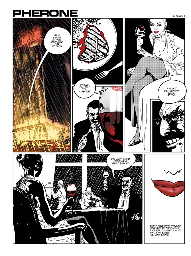 NOW AVAILABLE IN SOFTCOVER! Following Eve, a dangerously seductive woman on the edge of her sanity, PHERONE weaves a dark storyline filled with espionage, mystery and suspense. Armed with a killer body and a killer’s mind, the femme fatale must hunt down clues to rediscover her own troubled past, bringing violence and danger to anyone who crosses her path.