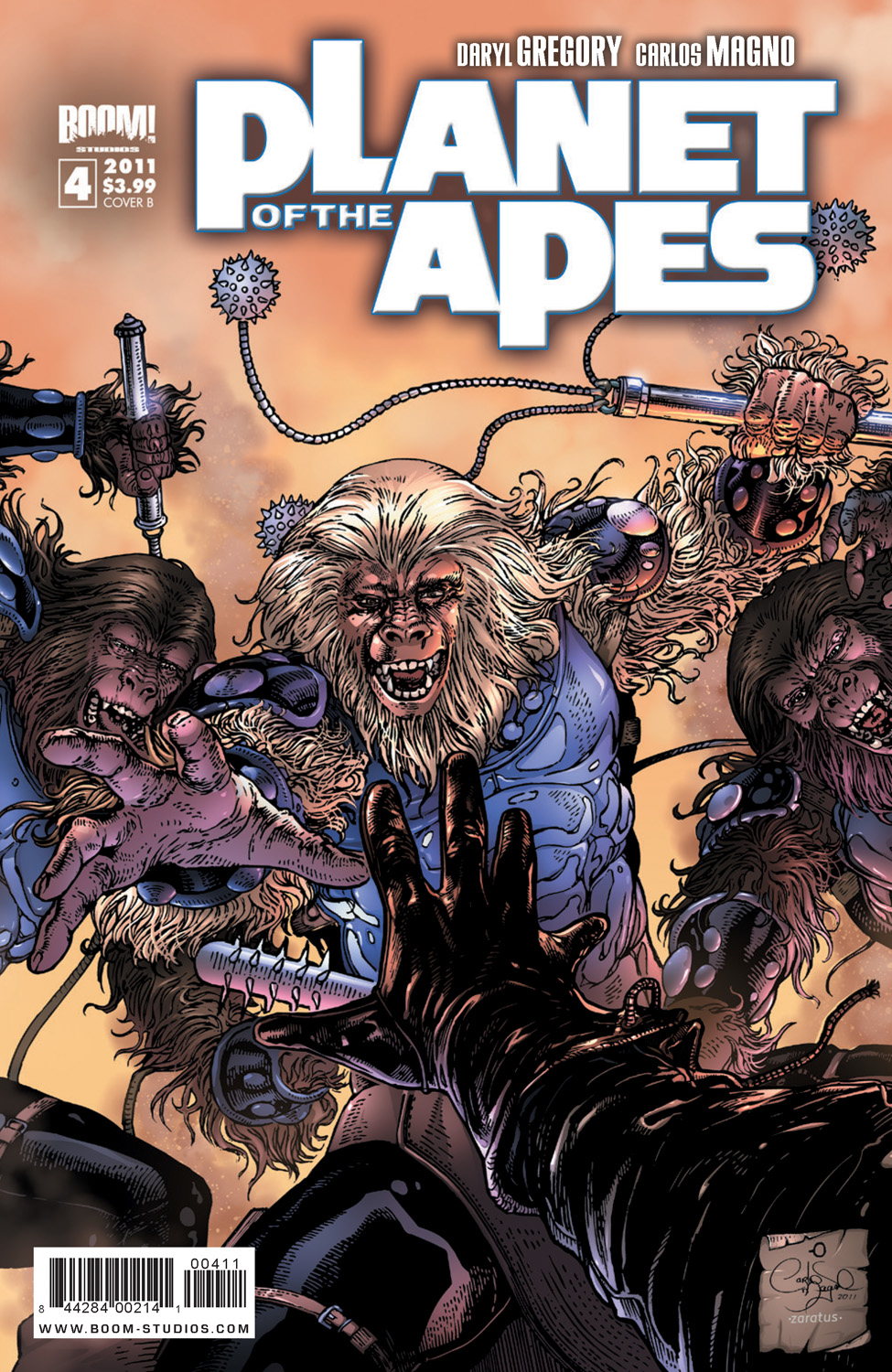 Get your hands on these damn dirty Apes! Ripped from the continuity of the first five Ape films, the first story arc in this ongoing series comes to a bloody conclusion! Secrets are revealed…and someone will pay! Man? Ape? Both? Discover for yourself as the next great Ape saga continues! Written by award-winning novelist Daryl Gregory!