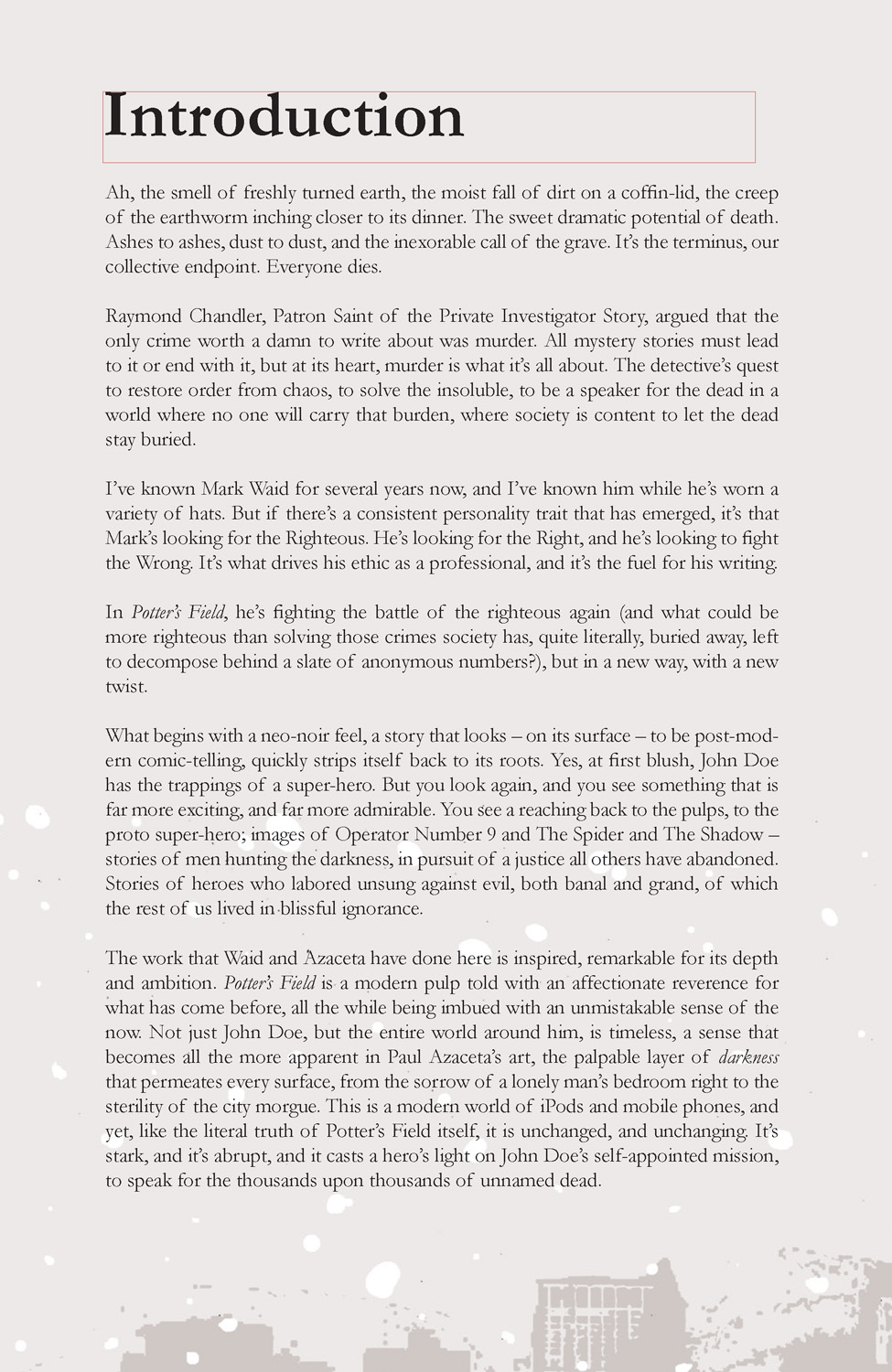 First time in trade paperback and featuring the first collaboration between legendary comic writer Mark Waid and superstar artist Paul Azaceta, the red hot team behind AMAZING SPIDER-MAN! Outside New York City is Potter’s Field, where the unnamed dead are buried. Now, a mysterious man has taken it upon himself to name the unnamed in this cemetery! Using a network of underground operatives who don’t know each other, he fights to save the unsaved and solve the mysteries of the unjustly slain! Collecting the critically acclaimed three issue mini-series and the STONE COLD one-shot into one volume! For fans of the “new crime comics” movement like CRIMINAL! Find out why AIN’T IT COOL says, “I’m hooked!”