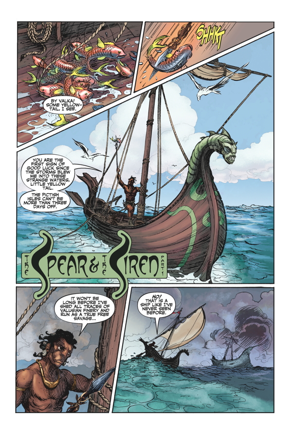 Paul Tobin and Wellinton Alves conclude their Conan adventure, David Lapham and Fabio Cobiaco tell a high-seas adventure featuring King Kull’s right-hand man Brule, Jeremy Barlow and Tony Parker adapt a cowboy adventure by Howard, Joshua Williamson and Patric Reynolds them up to revive Howard’s gritty detective Steve Harrison, and we bring you part one of the classic graphic novel Kull: The Vale of Shadow!