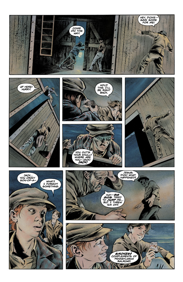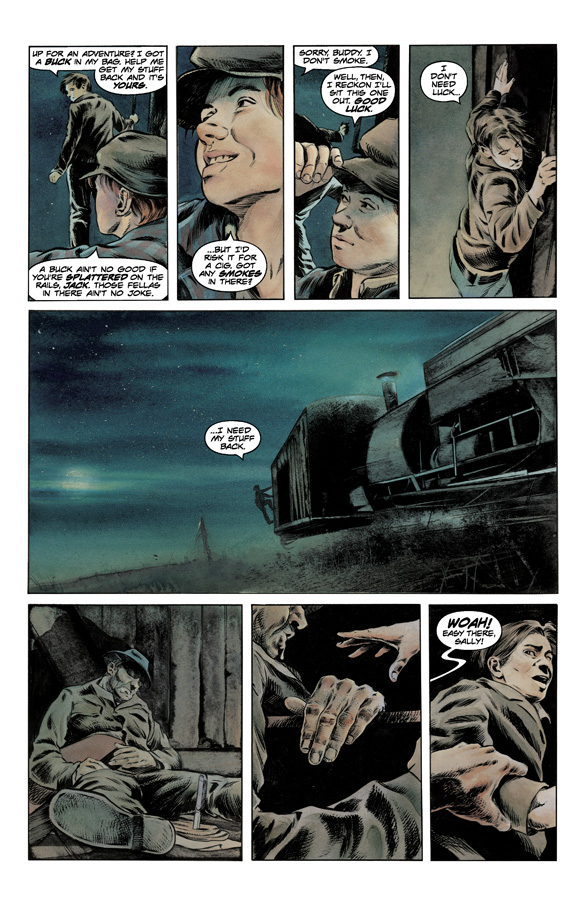 ‘NEW SKIN’ Jack learns the road is full of swindlers. And in Chicago, the most devious one awaits him: a travelling-salesman with shark-like-teeth who craves the flesh of the innocent. SCOTT SNYDER (American Vampire, Detective Comics), SCOTT TUFT and ATTILA FUTAKI (Percy Jackson) are back with 2011’s most terrifying horror series. SEVERED.