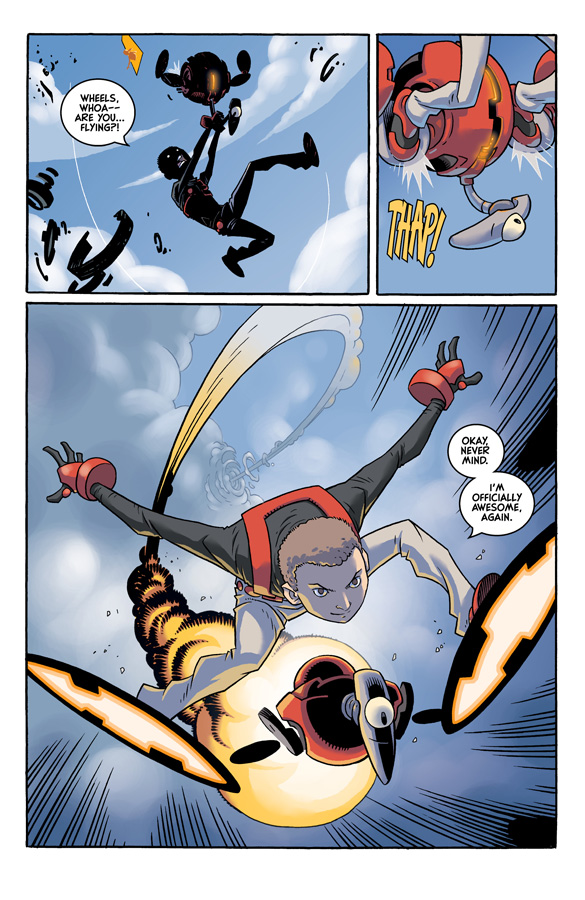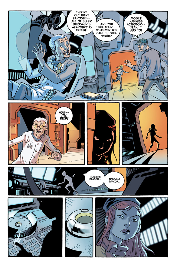 Super Dinosaur and Derek Dynamo have fought and defeated all kinds of cool stuff in their day, but they’ve never faced anything like this before. Max Maximus unveils his newest creation: The Mega-Raptor! This issue can’t be missed, just like every issue of SUPER DINOSAUR!