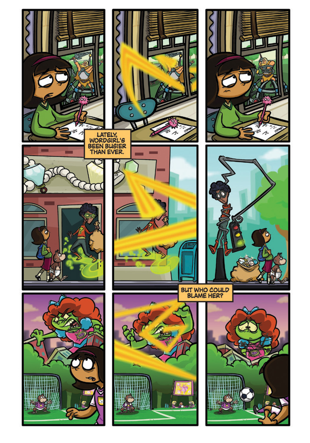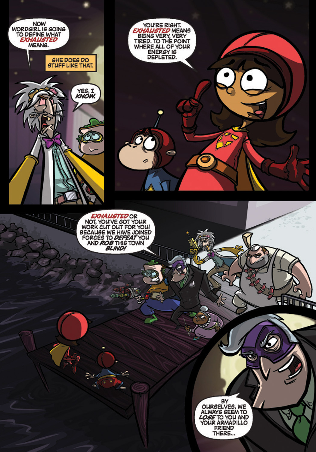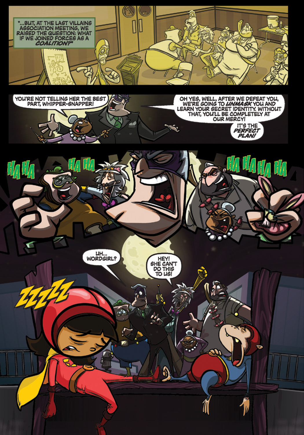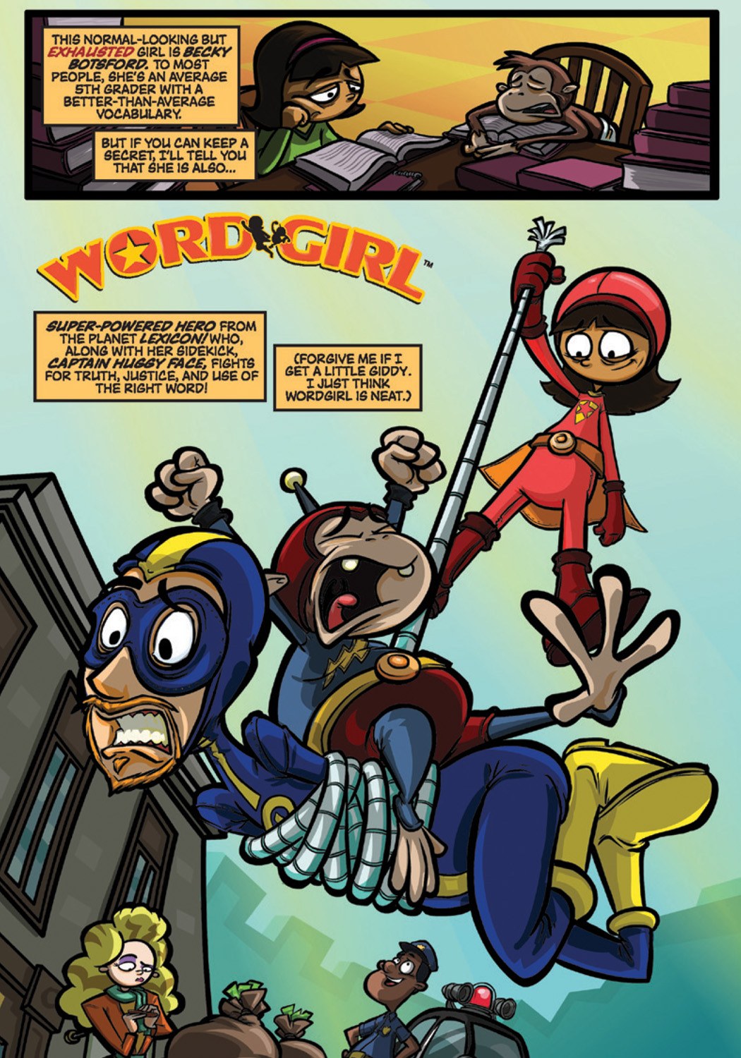 Word up! KABOOM! proudly brings you all-new adventures of WordGirl —based on the Emmy Award-winning animated children’s show of the same name. Join WordGirl and Captain Huggy Face as they fight for truth, justice and use of the right word! But a titanic team-up spells trouble when WordGirl’s arch-villains The Butcher, Mr. Big, Dr. Two-Brains, Granny May and Chuck the Evil Sandwich-Making Guy join forces…as the fearsome Coalition of Malice!