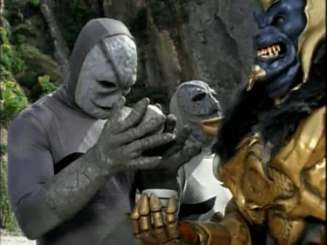 Because of the show’s general minimal continuity (“hey, the kids won’t notice! They don’t notice that the Yellow Ranger is actually a dude in the Japanese footage after all!”) some bits have to be taken from their Golem counterparts. Visually, the two ‘versions’ can be distinguished only because the golems are slimmer, lighter in floor and have narrow slit-like red eyes.