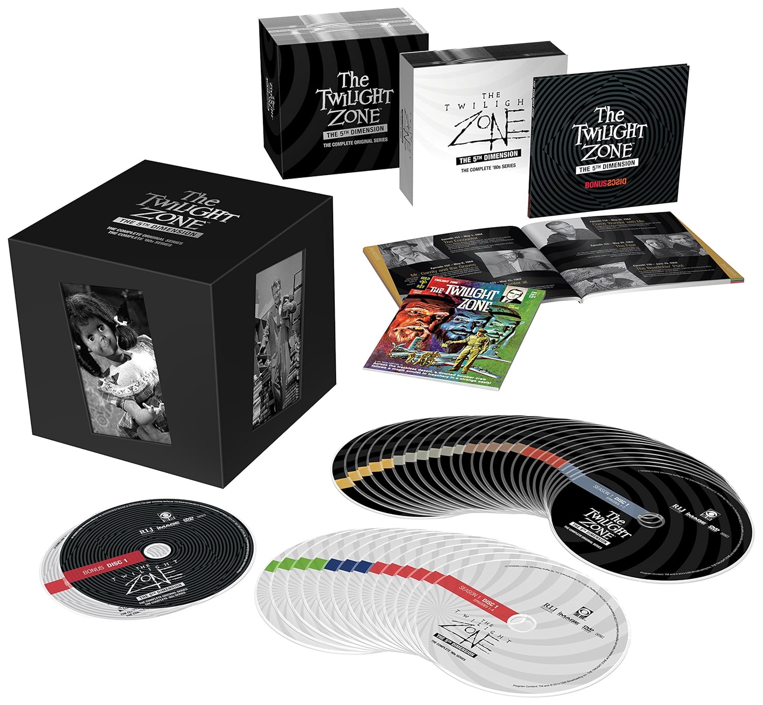 In addition to the two beloved series (225 episodes combined), and more than 20 hours of bonus features listed (including commentaries, featurettes, interviews, the American Masters documentary Rod Serling: Submitted For Your Approval, Serling interviews, lectures and appearances, cast and crew interviews, original sponsor billboards and isolated music scores), The Twilight Zone: The 5th Dimension Limited Edition Box Set contains one of four possible collectible 1960s Twilight Zone comic books. Limited Edition packaging features 3D black and white lenticulars and a serialized number on each of the box sets.