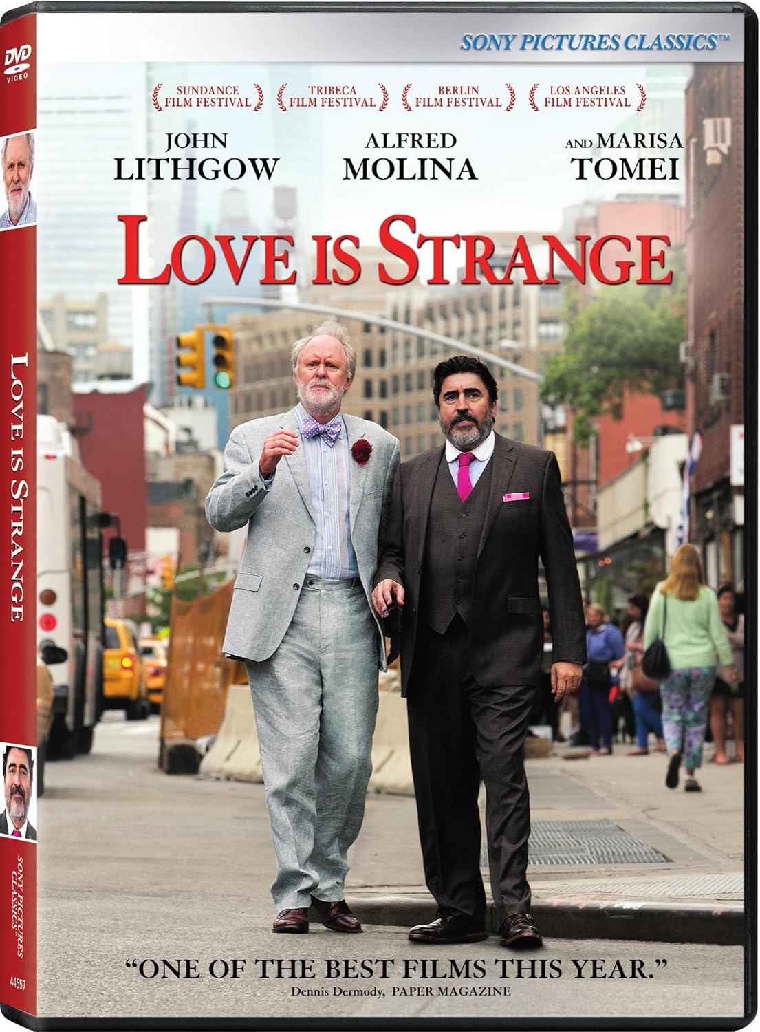 After nearly four decades together, Ben (John Lithgow) and George (Alfred Molina) finally tie the knot. But when George loses his job, the couple must sell their apartment and temporarily live apart until they can find an affordable new home. George moves in with two friends (Cheyenne Jackson and Manny Perez) while Ben ends up across town with his nephew (Darren Burrows), his wife (Marisa Tomei) and their teenage son with whom Ben shares a bunk bed. While struggling with the pain of separation, Ben and George are further challenged by the intergenerational tensions and capricious family dynamics of their new living arrangements. Love Is Strange depicts the delicate nature of two people building a long life together and their love growing deeper and richer with time. Extras include commentaries, featurettes and Q & A.