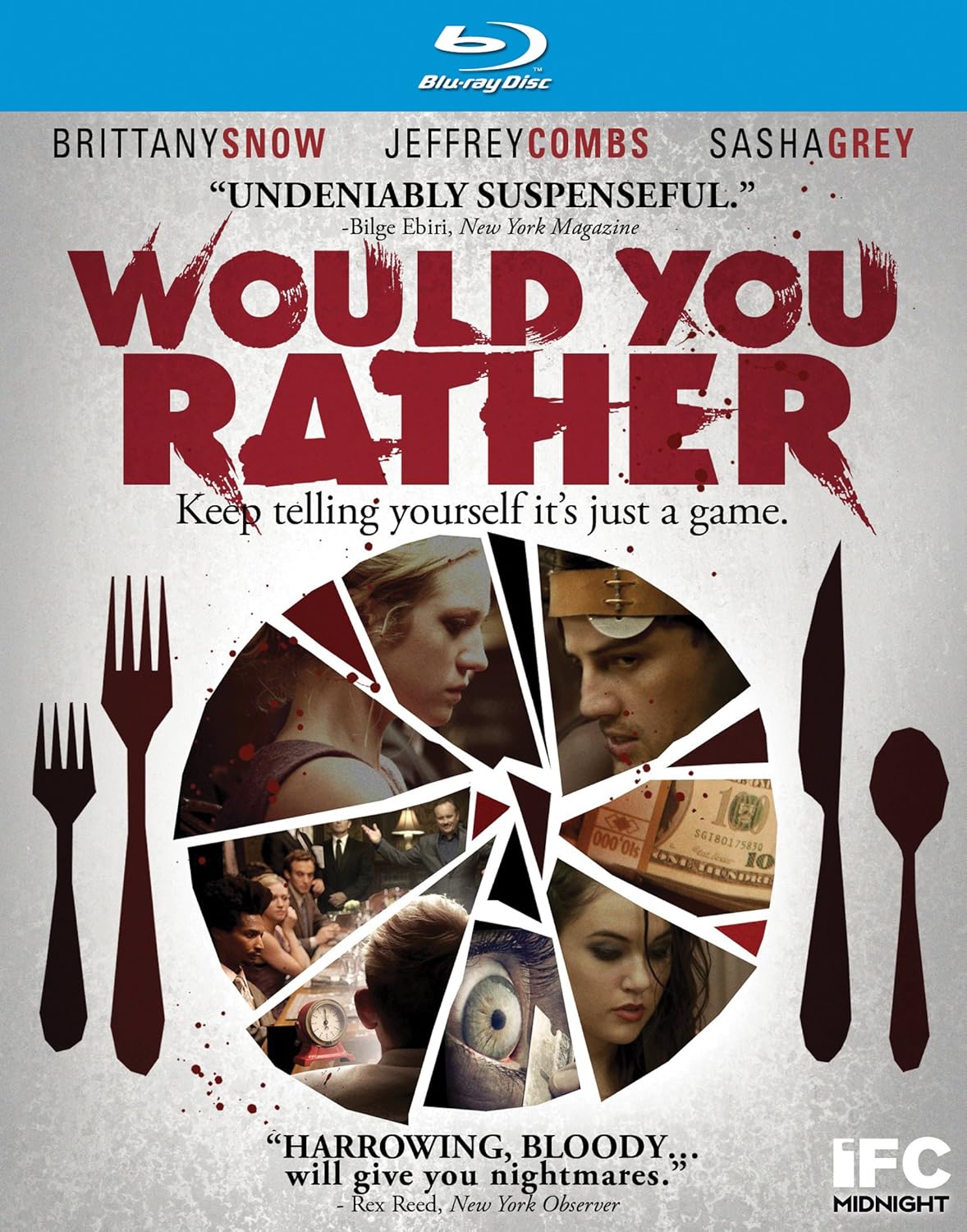 What would you do if a millionaire offered you a chance to solve all your life s problems? After the tragic death of her parents, Iris (Brittany Snow) is desperate to make ends meet while caring for her terminally ill younger brother. When seemingly philanthropic aristocrat Shepard Lambrick (Jeffrey Combs) expresses an interest in helping them by inviting her to an exclusive dinner party that offers the chance at untold riches, Iris finds herself in a group of similarly desperate individuals all looking to make some easy money. But the guests soon find themselves trapped in Lambrick’s mansion and forced to play a sadistic game of Would You Rather, where only the winner will get out alive. As the game progresses, Iris must decide how far she will go to save her brother… and herself. Featuring a terrific ensemble cast that includes Sasha Grey, Lawrence Gilliard Jr., Eddie Steeples and Charlie Hofheimer, Would You Rather is an edge of your seat horror thriller that invites you over for a quiet evening of murder.
