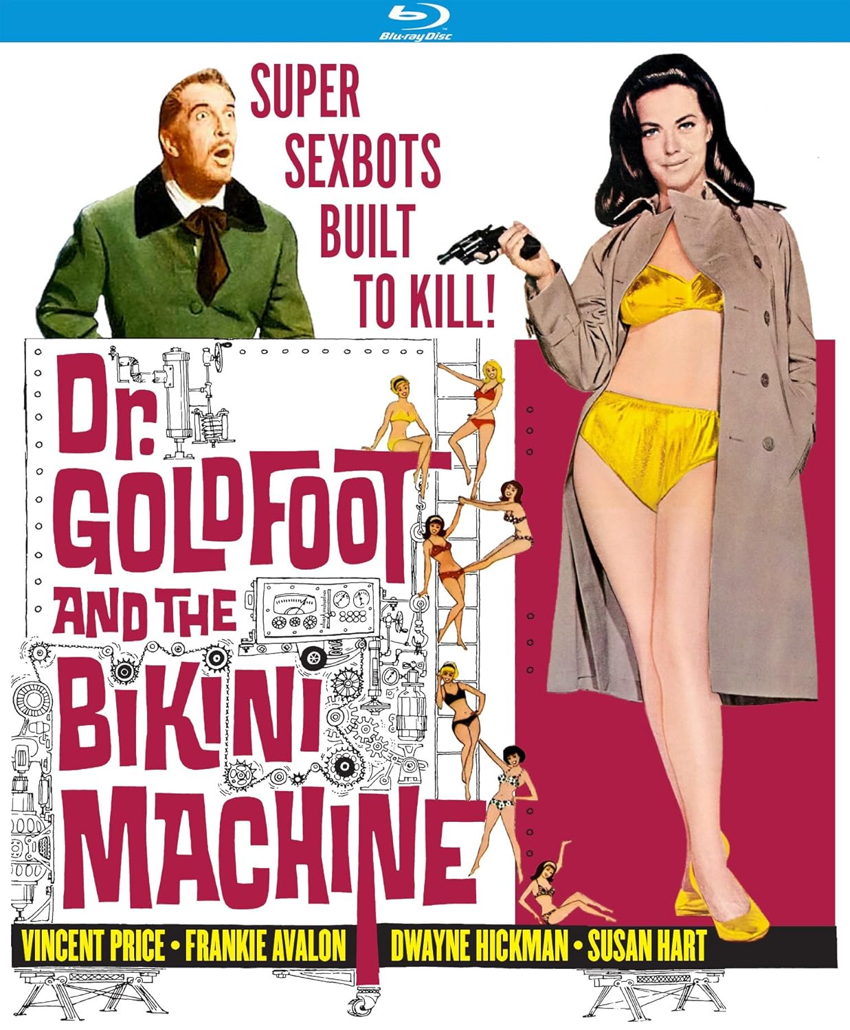 Beware! This band of bikini-clad cuties are licensed to kill… with comedy! Featuring screen icon Vincent Price (The Oblong Box) in his most unusual and amusing role of his career and Frankie Avalon (The Million Eyes of Su-Muru), with cameo appearances by Annette Funicello and Harvey Lembeck, this sex-ational spy spoof is thrill-packed fun. Deranged Dr. Goldfoot (Price) has a dream… of taking over the universe! So the mad scientist invents a machine that builds sultry, bikini-clad sex sirens, whom he programs to seduce the world’s wealthiest men into signing over their fortunes. But when Secret Agent Craig Gamble (Avalon) learns of Goldfoot’s evil plot, he knows he must destroy these gorgeous gold diggers before losing his heart – and quite possibly his life – to the hottest assassins ever built! Norman Taurog (Blue Hawaii) directs the fun-filled sci-fi comedy co-starring Susan Hart (War-Gods of the Deep), Dwayne Hickman (Cat Ballou) and Fred Clark (Sunset Blvd.). Extras include commentary and animated gallery.