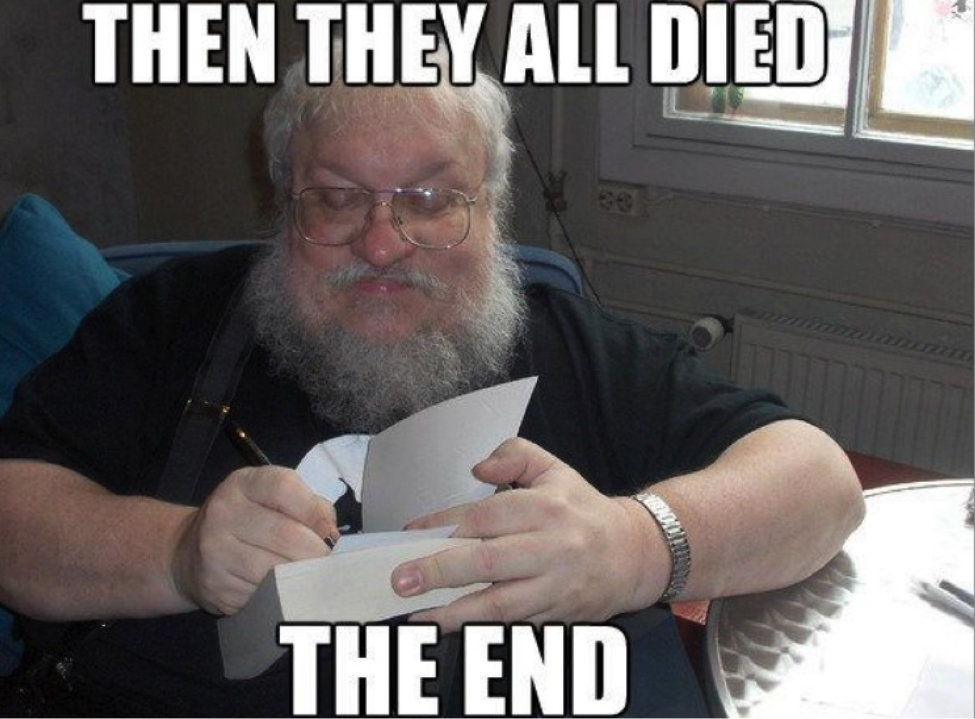 So, now were a doomed to wait another year. Here is hoping that next year is filled with more superstar team ups (Jon and Dany? Brianne and a mysterious Lady Stoneheart? Stannis and the business-end of Needle?) and a few of the MIA lesser Starks, and way, way less sad Sansa.