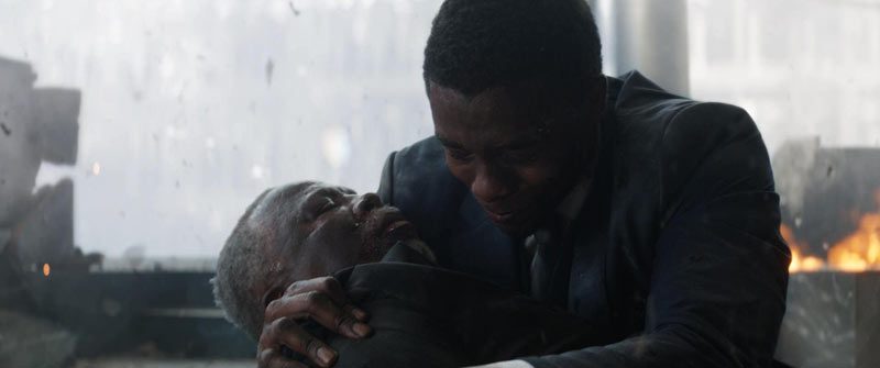 This question moves us to the central tension of the film: the fact that Killmonger’s father (Sterling K. Brown as N’Jobo) has been sent to America (Oakland) as a spy for Wakanda but turns against his state by assisting outsiders to steal vibranium. His death at the hands of T’Chaka and the subsequent abandonment of his son rather than returning him to Wakanda has served as the flashpoint for criticism from a variety of critics of the film that frame the killing as murder and the abandonment as exemplar of the callous disregard of the Wakandans for less fortunate diasporic Africans. I don’t buy it; at least not all of it.