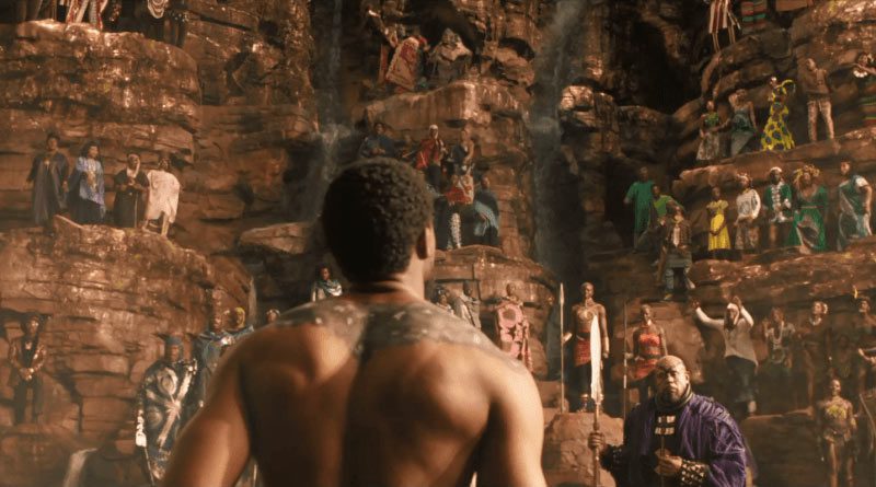 The blackness of these bodies against a Technicolor, high definition fantasy-scape is something we have never seen before. This film, in the creation of a black superhero, does everything that Django Unchained failed to accomplish in that the vehicle for the elevation of the beauty of blackness in Django was against the hideous backdrop of chattel slavery in the ante-bellum south. There is no such drab ugliness in the cinematography here. The grandeur of Warrior Falls exemplifies this. The black bodies adorned in the explosion of color and sound creates an alternative reality that charts new aesthetic territory while forcing us to consider our own relationship to what is beautiful.