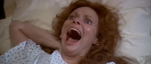 Meanwhile in the surgical theater, traditional medical science fails, as the neck fetus begins to control the hands of our surgeon, making him cut into himself. This is no normal neck fetus here, this thing has all kinds of mojojojo, and now our doctor must consult his super computer for answers. Back in the mystical realm, Harry has now gone off to see out mediums to séance the hell out of Karen’s neck to get her all OK again, but of course that fails as well. So while Karen lies in her hospital bed, the lump has grown into the size of a Billy Barty midget and is looking for a ripping exit.